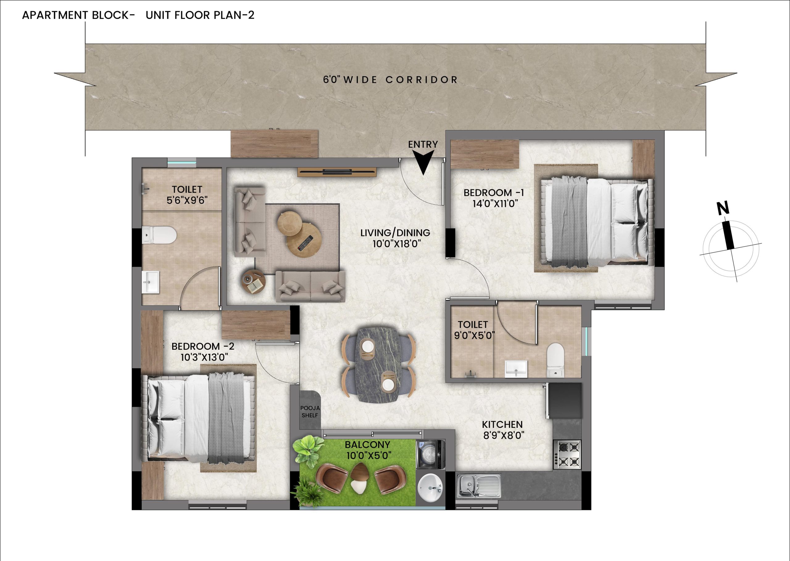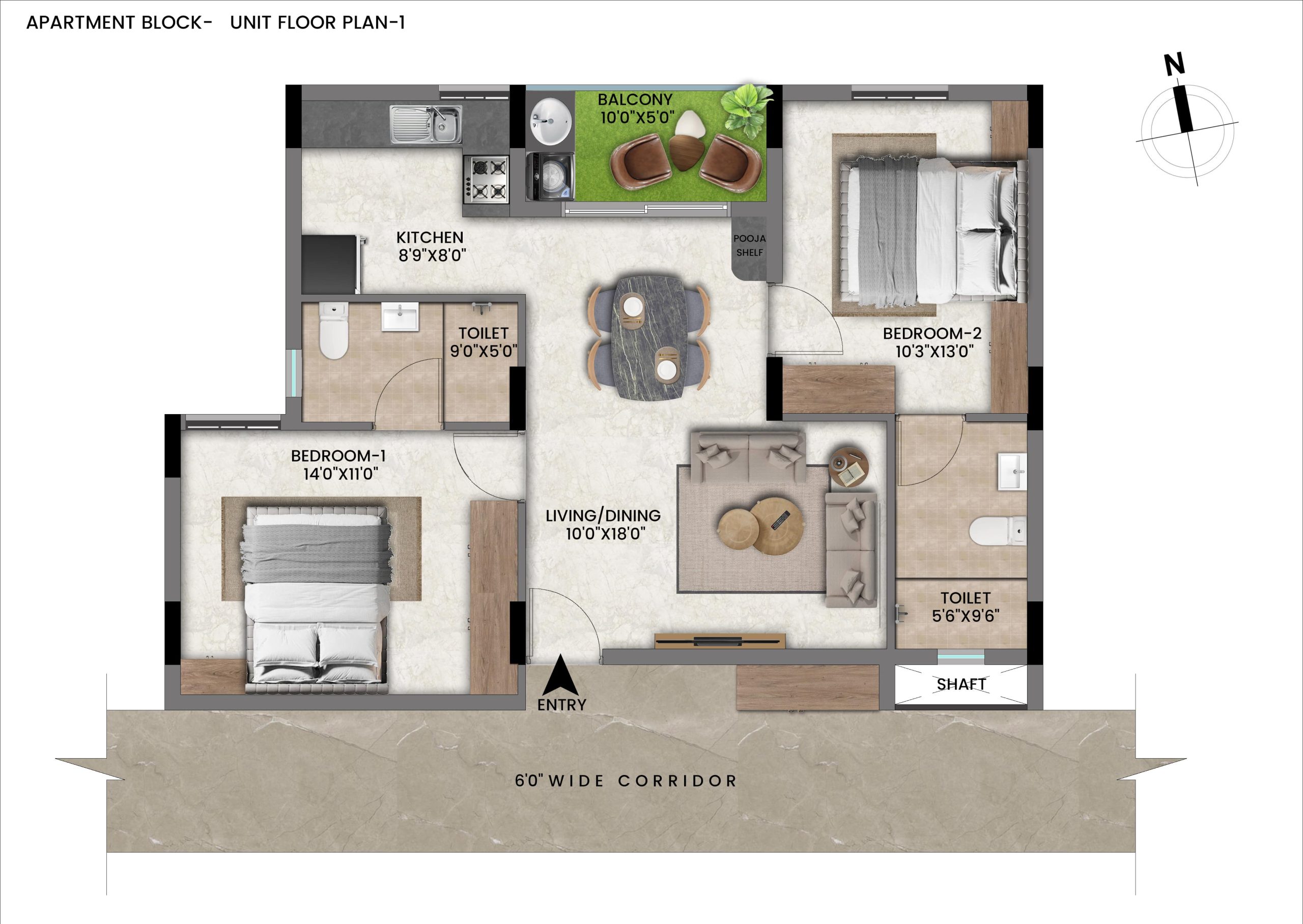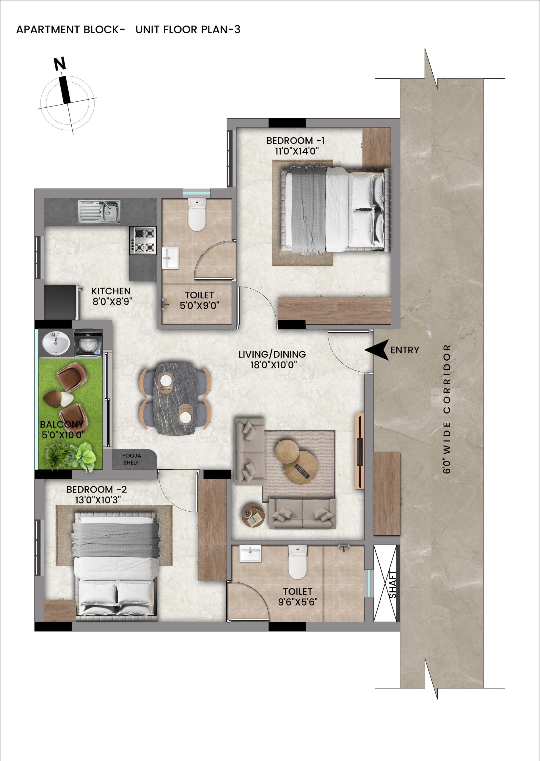 Apartments | 1 BHK & 2 BHK | 710, 1010 | 61 |